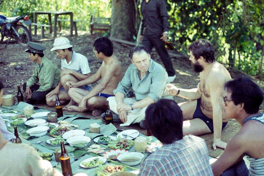 Laos - oběd v přírodě u Sayaboury, uprostřed M. Hesoun a B. Fučík (22. 11. 1987).
